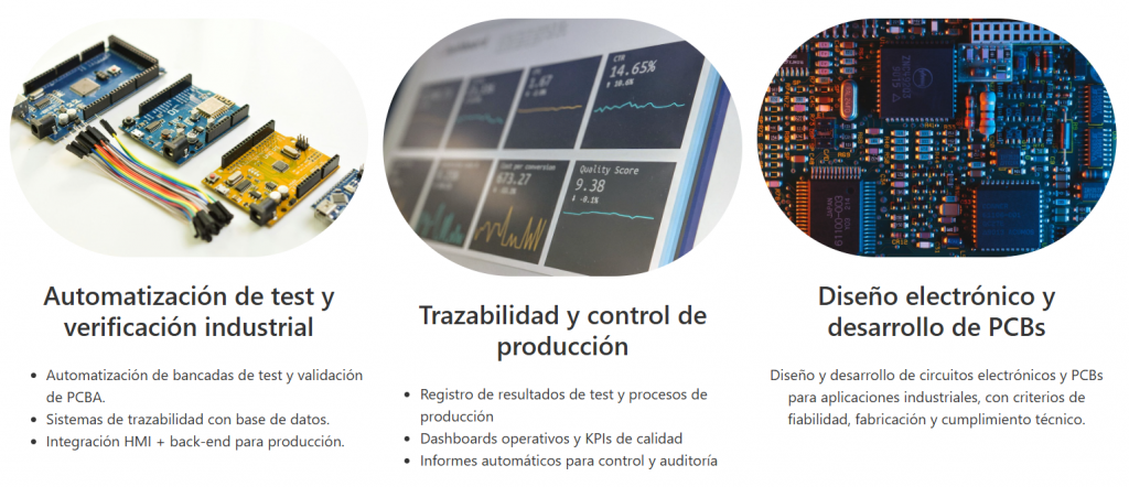 Ayudamos a empresas industriales a mejorar la eficiencia, la calidad y la fiabilidad de sus procesos mediante soluciones de automatización y verificación electrónica adaptadas a cada entorno productivo.